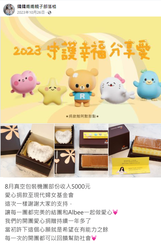 蛋糕由阿默蛋糕配送,捐款收據另由現代婦女基金會開立寄出,兩者日期不同,所以不會同時收到喔!